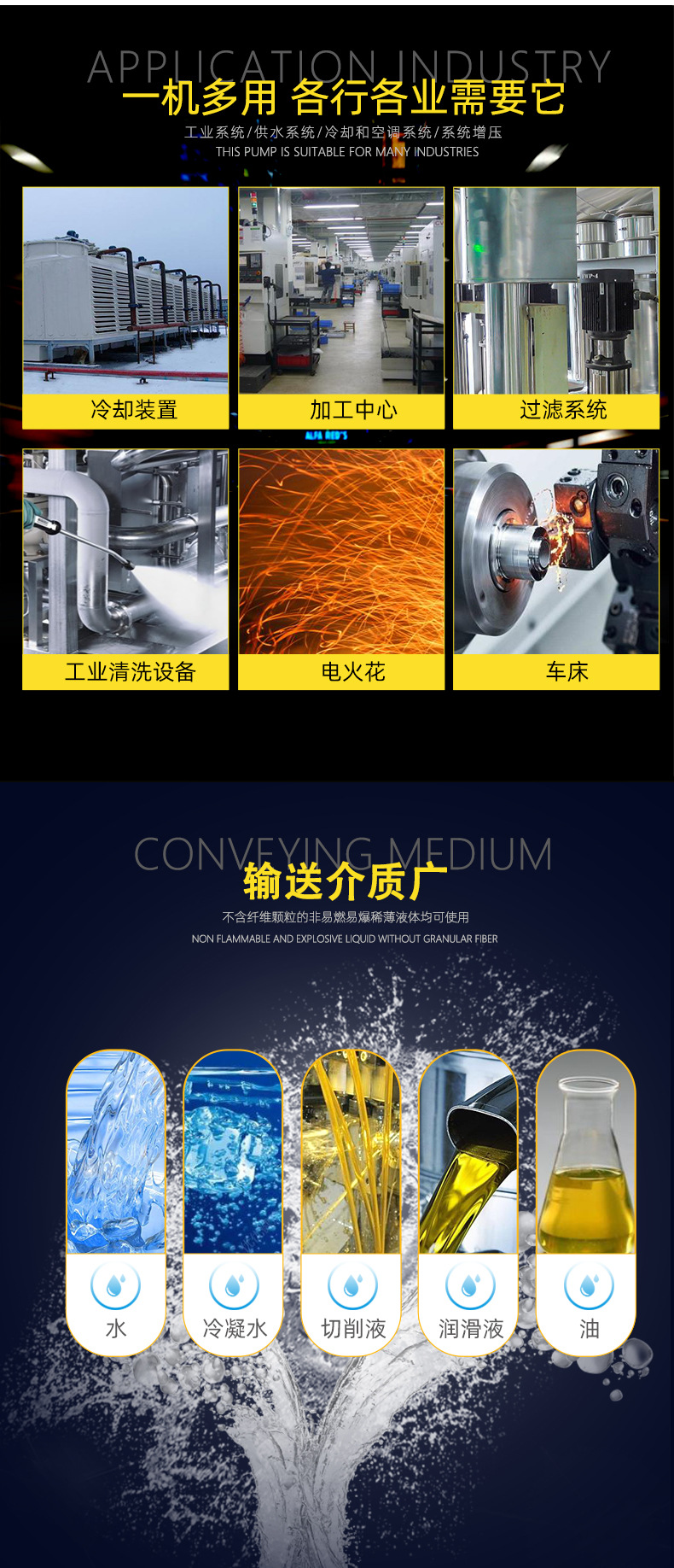 應(yīng)用范圍:水廠過濾與輸送,分區(qū)送水、主管增壓、高層建筑二次供水;流程水系統(tǒng)、清洗系統(tǒng)、高壓沖洗系統(tǒng)、消防系統(tǒng);冷卻、鍋爐給水和冷凝系統(tǒng)、機(jī)床配套、酸和堿;空調(diào)系統(tǒng);超濾系統(tǒng)、反滲透系統(tǒng)、蒸餾系統(tǒng)、分離器、游泳池