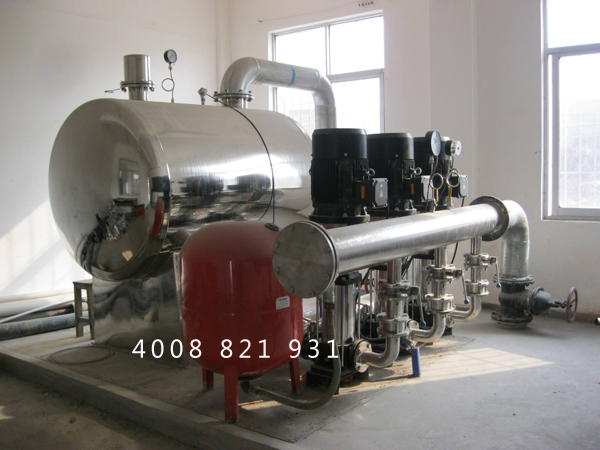 為了減小直接抽吸對市政供水的影響,一般應在設備入口管道上串接一個承壓貯水容器。主要起緩沖作用(動態補償作用)的水罐稱為緩沖罐;平時無動態緩沖作用僅在市政管無水壓時才起備用水源作用的水罐稱為水源罐。大容積的承壓水池也是水源罐的一種形式(一般采用鋼筋混凝土現場施工建造。