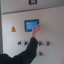 該項目為泵房改造項目,系統流量600m3/h,揚程118m,采用南方泵業5臺不銹鋼多級立式離心泵并聯組成的DRL120-60-1成套變頻供水設備。泵組過流部件均采用SUS304不銹鋼材質,泵出水口均加裝軟接,設備出口端加裝了DN300電磁流量計直接讀取出水流量,并采用數據線將電磁流量計數據傳輸至PLC直接顯示在屏幕上,因高爾夫球場草坪的噴淋瞬間流量變化比較大,同時對不同天氣不同時段噴水的量要求精度較高,這樣能使用戶更直觀的監控到瞬間用水量及累積用水量。