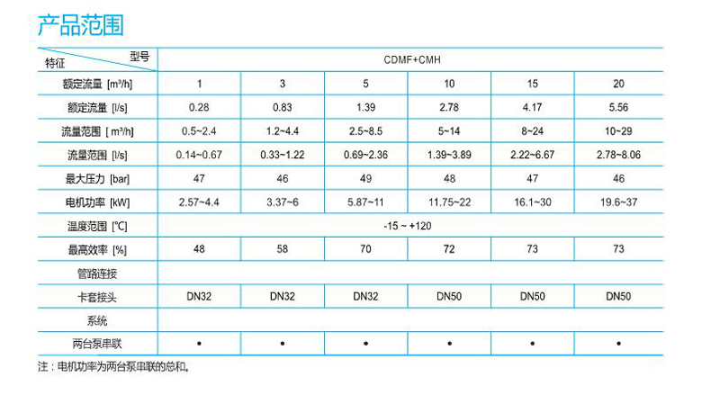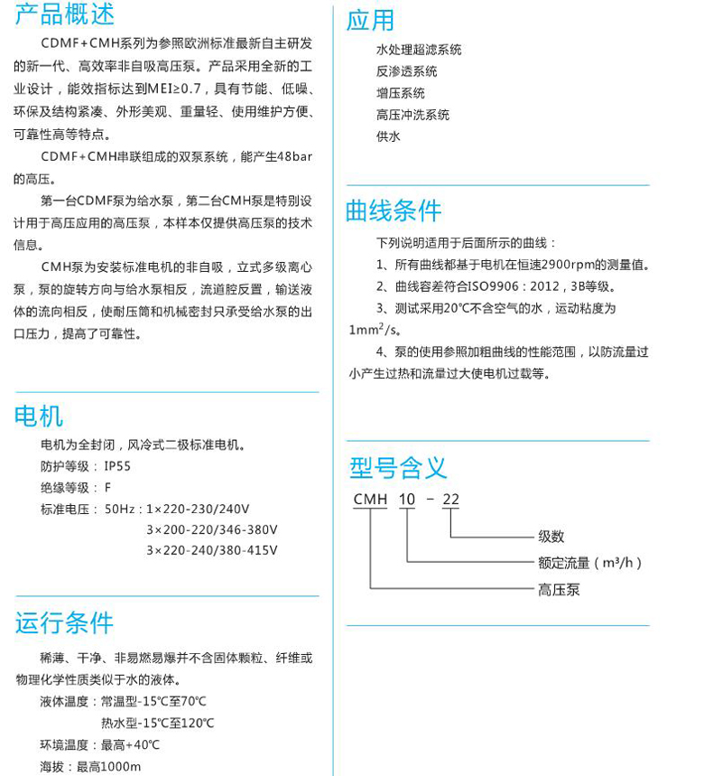 CDMF+CMH系列為參照歐洲標(biāo)準(zhǔn)自主研發(fā)的新一代、高效率非自吸高壓泵。產(chǎn)品采用全新的工業(yè)設(shè)計(jì),能效指標(biāo)達(dá)到MEI≥0.7,具有節(jié)能、低噪、環(huán)保及結(jié)構(gòu)緊湊、外形美觀、重量輕、使用維護(hù)方便、可靠性高等特點(diǎn)。