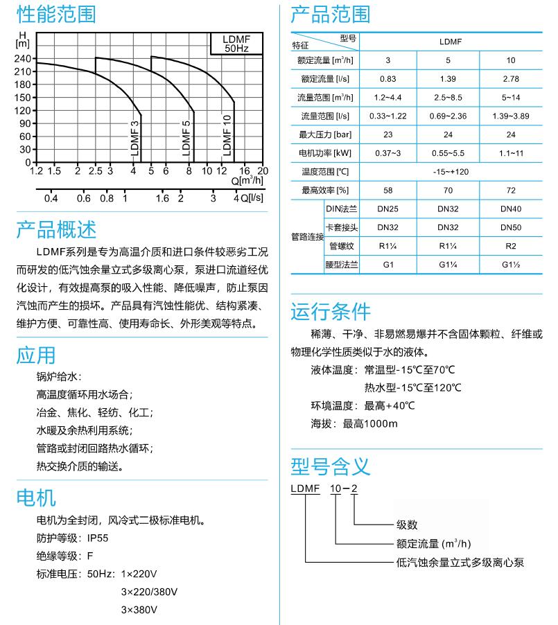 南方LDMF系列為參照歐洲標準最新自主研發的新一代、高效率非自吸立式多級離心泵。產品采用全新的工業設計,能效指標達到MEI≥0.7,具有節能、低噪、環保及機構緊湊、外觀美觀、重量輕、使用維護方便、可靠性高等特點。